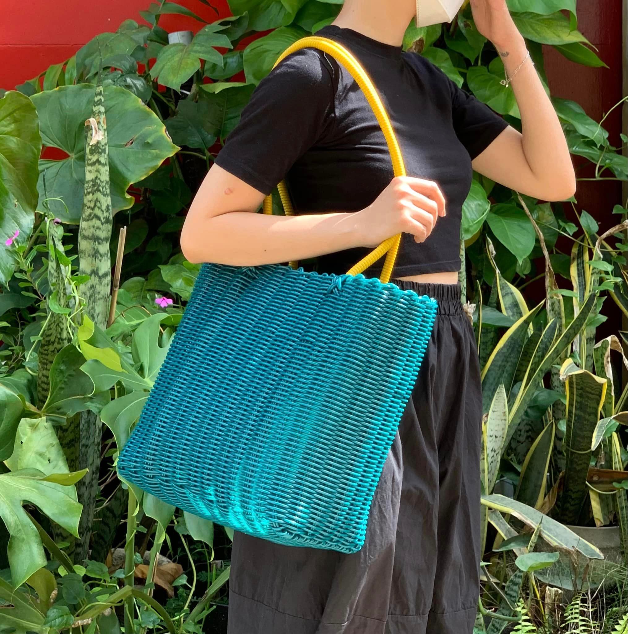 Túi được đan thủ công từ những sợi PE nhiều màu sắc. Với tất cả tông màu sắc tươi tắn của mẫu túi đi biển là sự cân bằng, đầy tươi mát, phấn khởi.