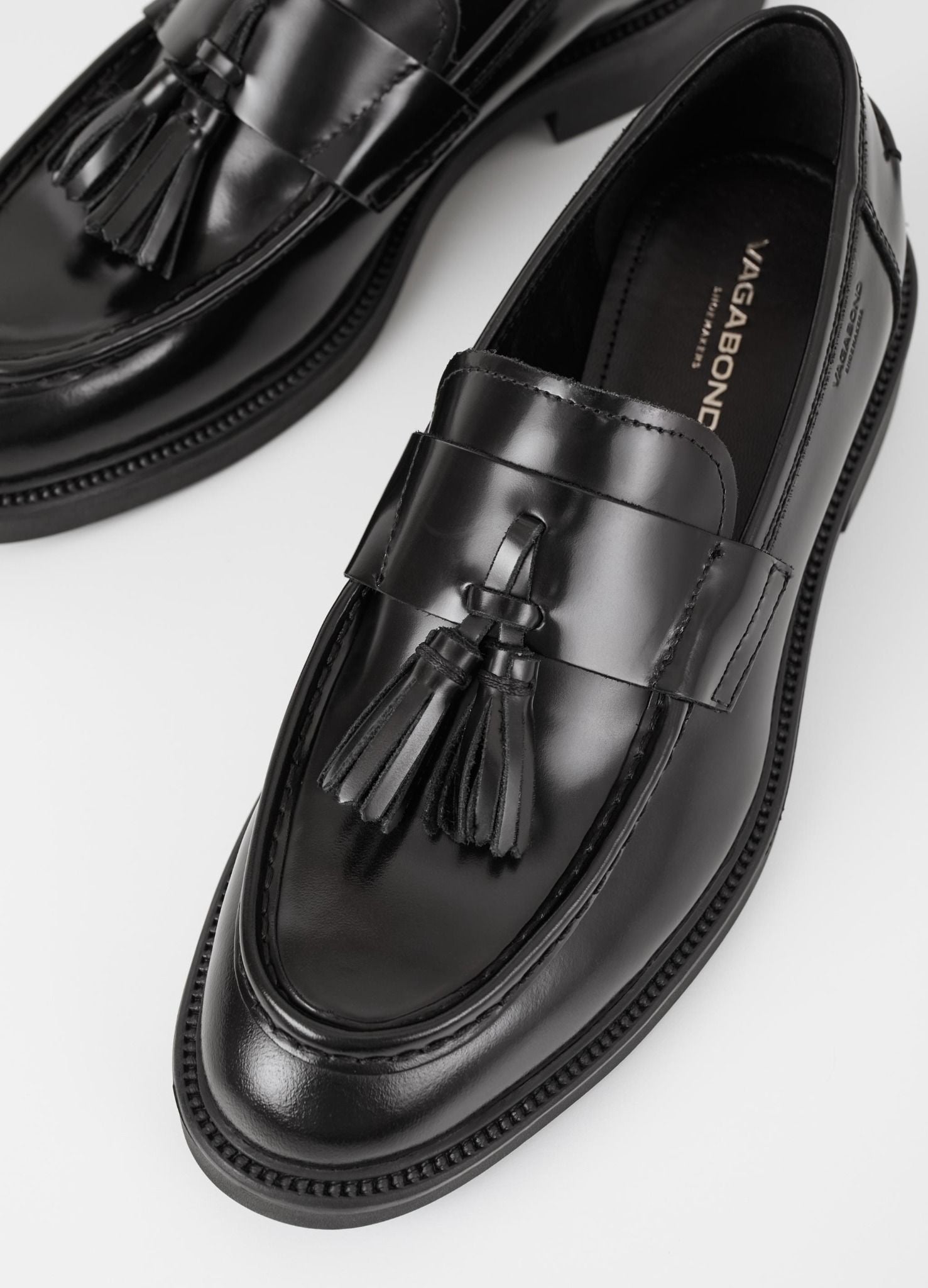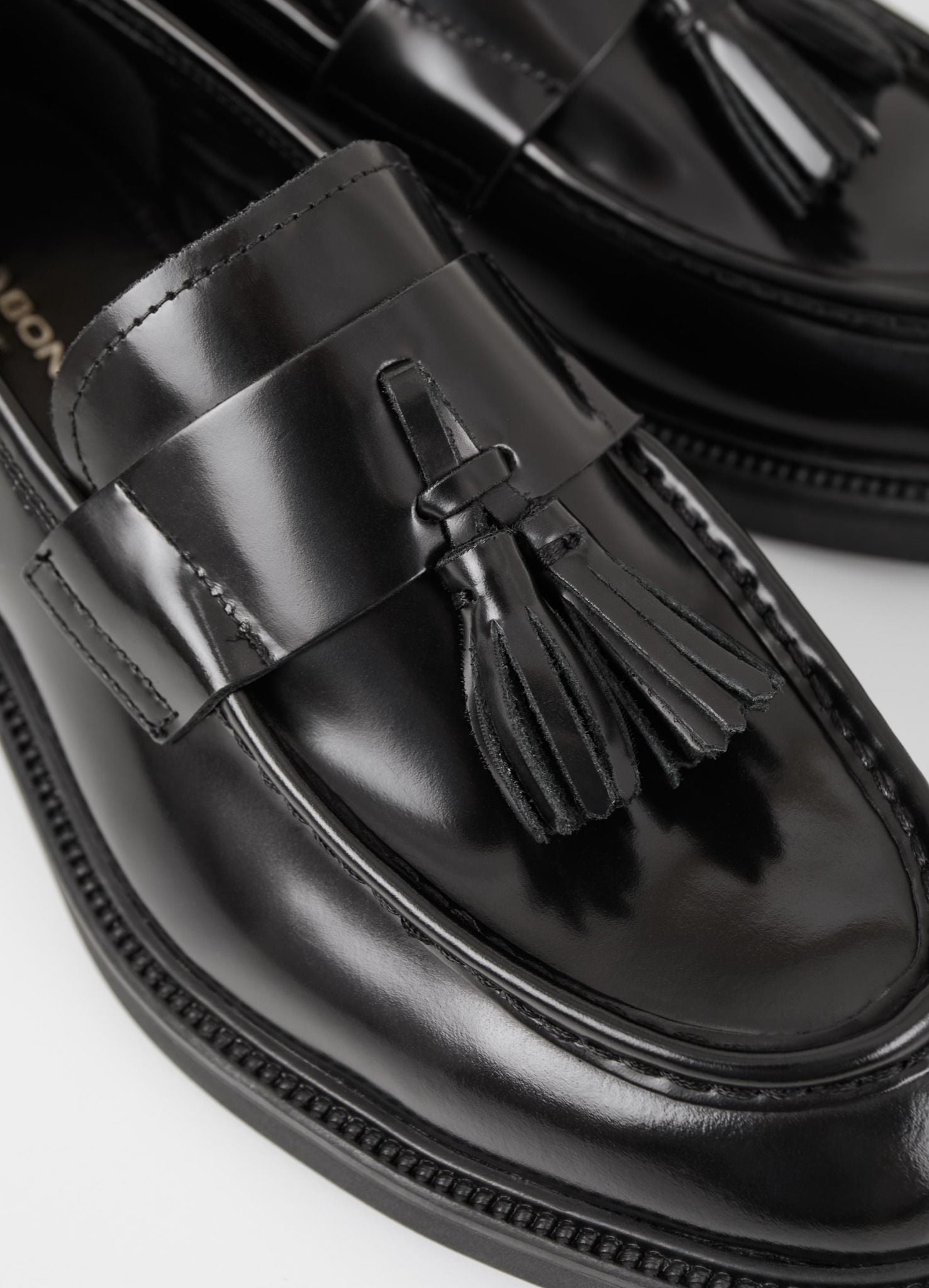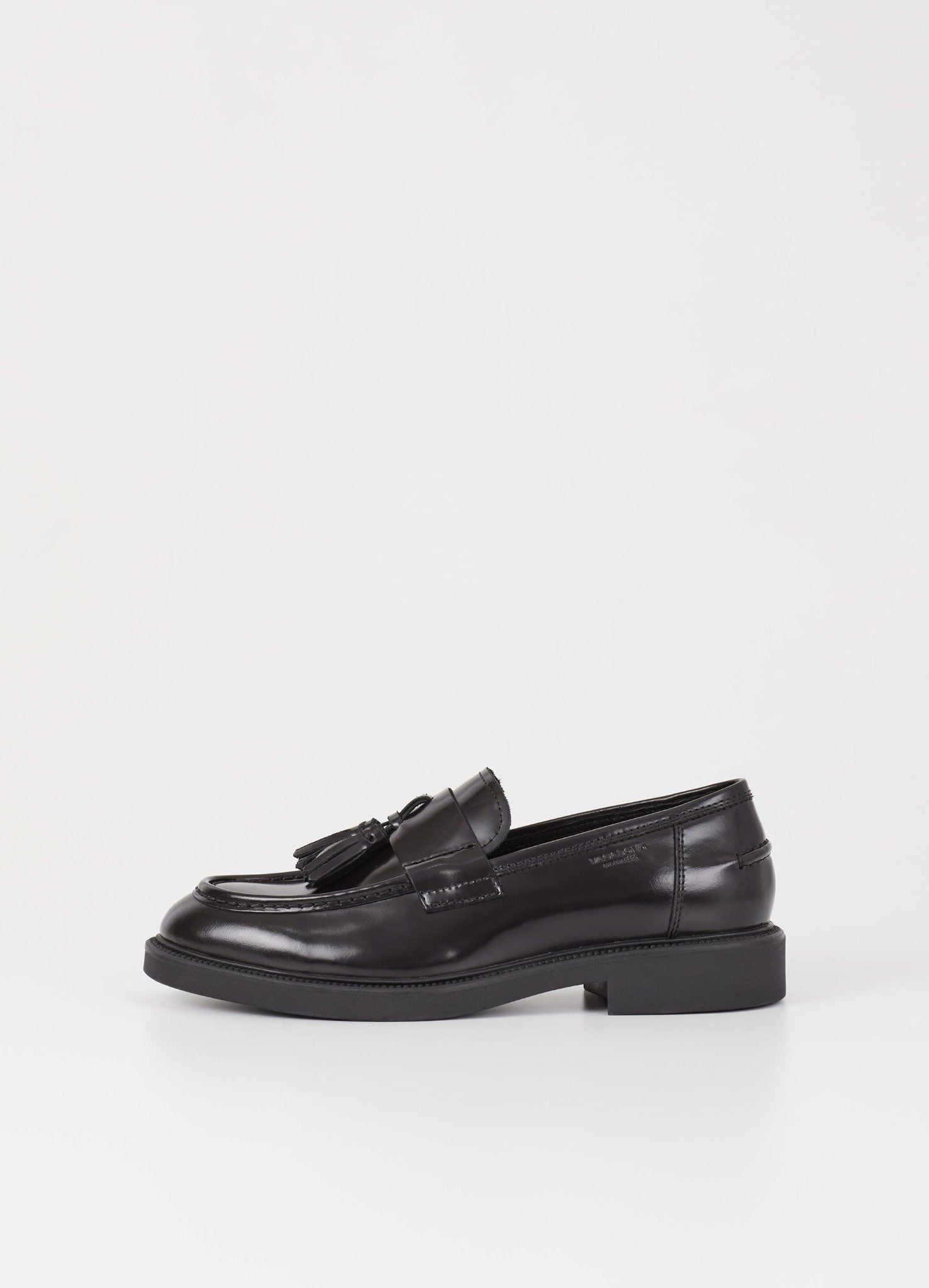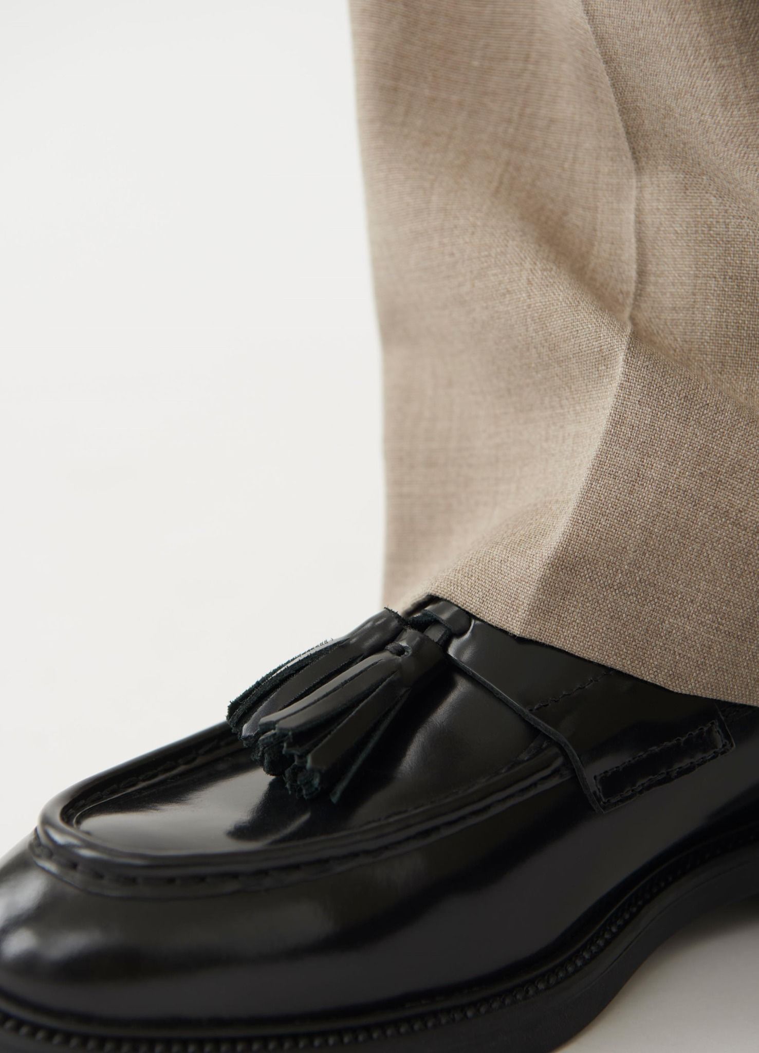 là đôi giày loafer có chi tiết dây chùm, mang vẻ ngoài thanh lịch và cổ điển. Được chế tác từ da bóng đen, đôi giày này có mũi hình quả hạnh, đường may moc-toe đặc trưng và chi tiết dây chùm trang trí. Gót giày chắc chắn với độ cao 33mm, mang lại sự thoải mái và sang trọng cho mỗi bước đi.